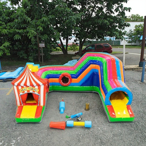Commercial Playground Rainbow Inflatable Bouncer Children's Inflatable Train Tunnel Obstacle with Bounce House Combo Slide