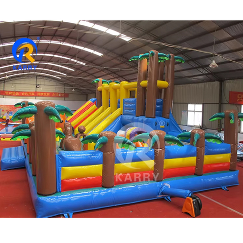 Commercial PVC Dino Park Inflatable Double Slide for Sale Inflatable Bouncer Combo Jumping Castle Palm Tree Inflatable Slide