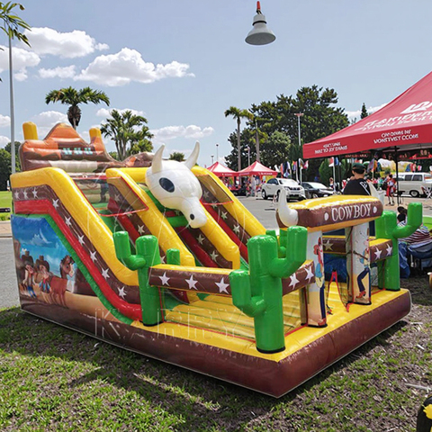 スポーツ用スライド商業用牛テーマ屋外インフレータブルジャンピングゲーム遊び場ドライスライド