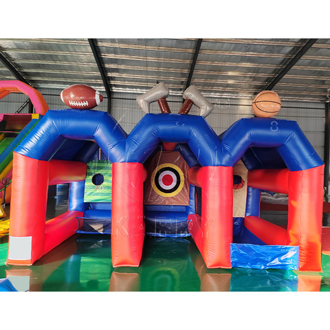 商業パーティーレンタルインフレータブル3-in-1カーニバルゲームスポーツインフレータブル斧投げ/サッカー/バスケットボール射撃ゲーム